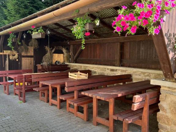 K pobytu si můžete dopřát bohaté snídaně formou švédských stolů nebo zvolit variantu s polopenzí pro ještě větší pohodlí. Využít můžete také příjemné posezení pod zastřešenou pergolou nebo u ohniště vedle chalupy, ideální pro večerní relaxaci.